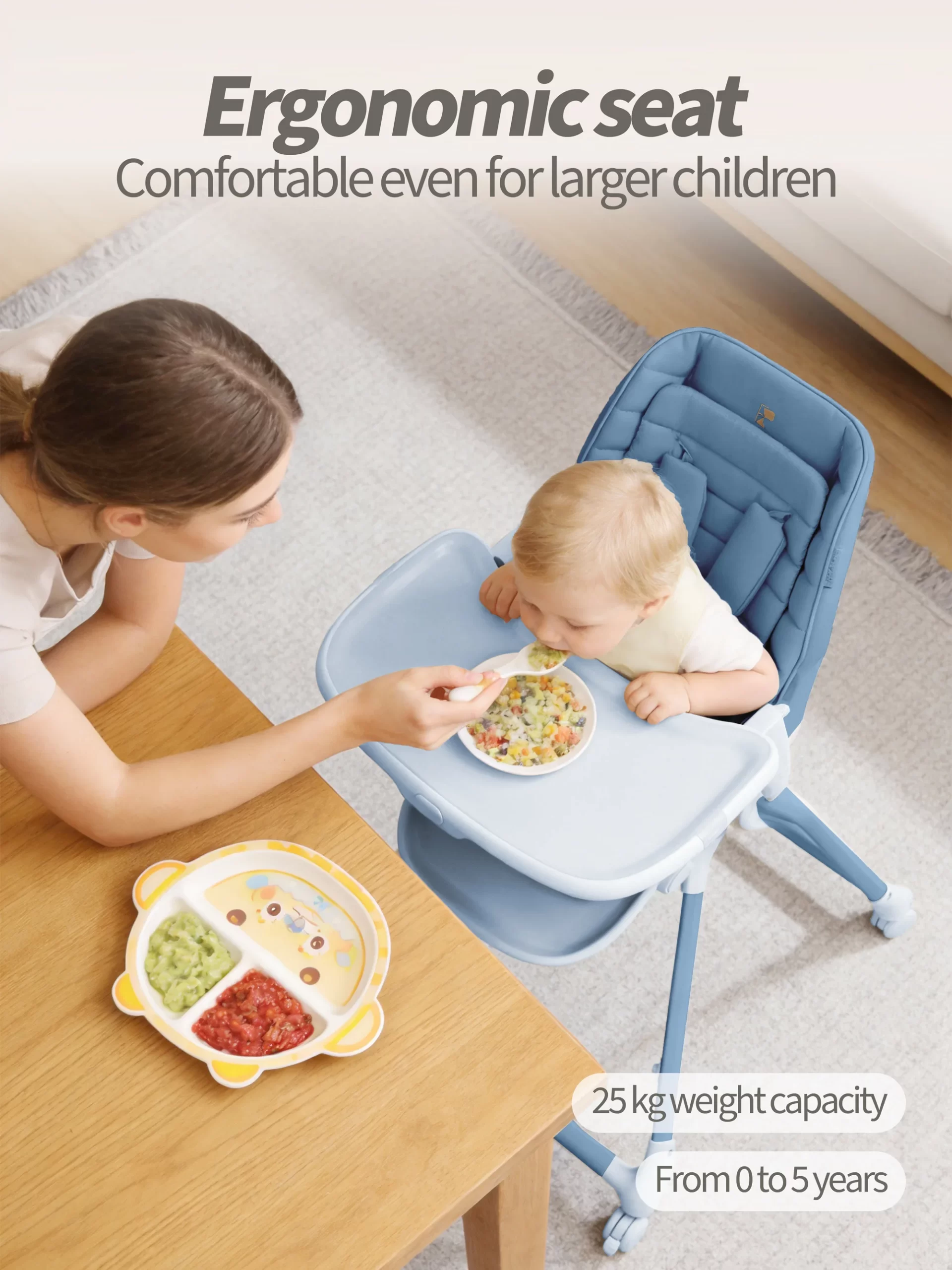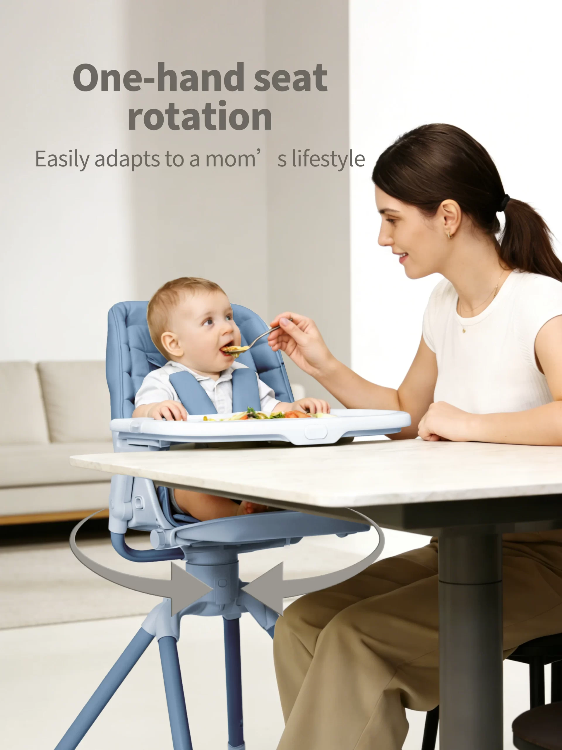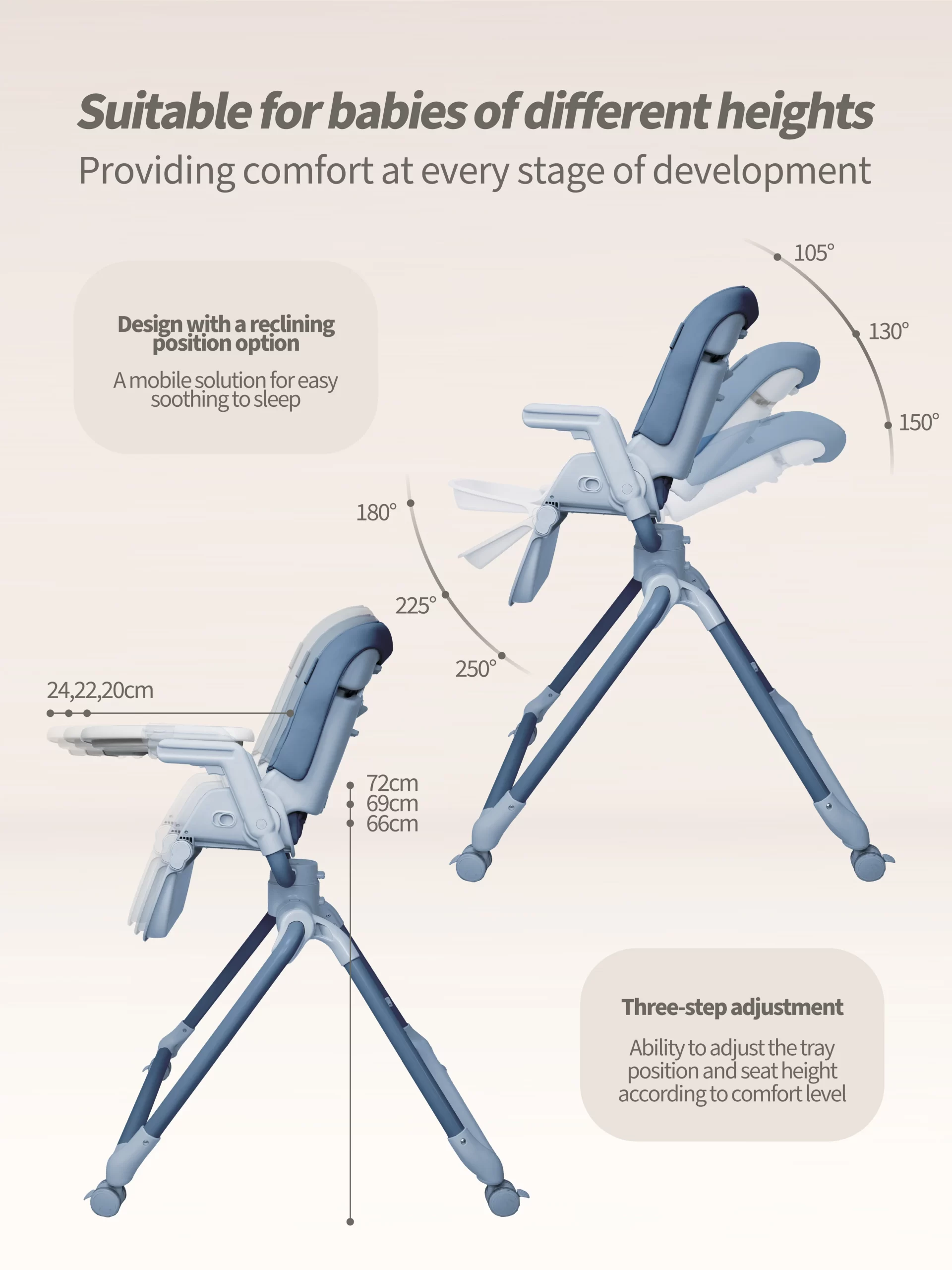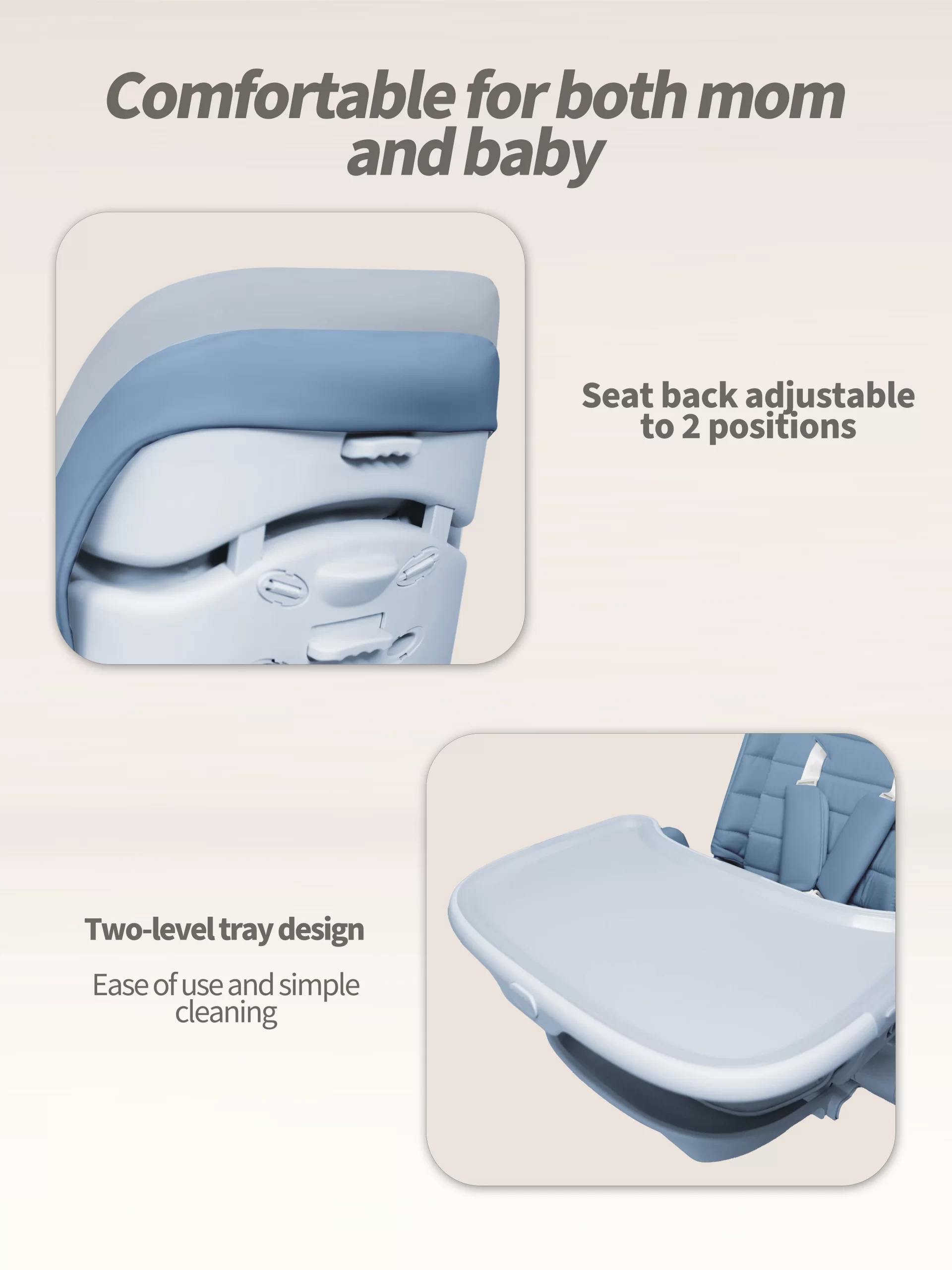Backrest Adjustment: The backrest can be adjusted to multiple angles, allowing your baby to sit upright for eating or recline for a nap, offering flexibility and comfort in various scenarios.