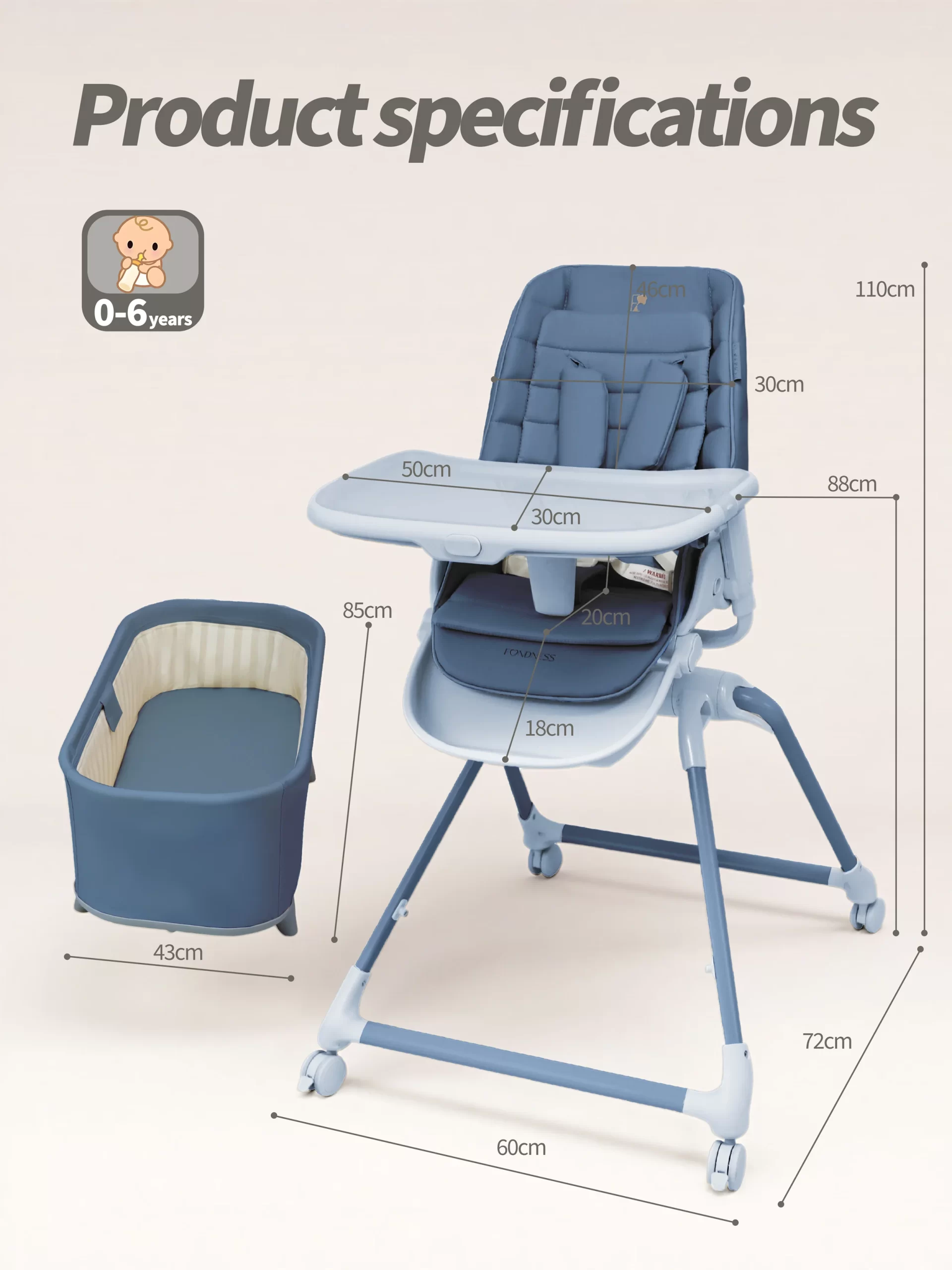 2-in-1 Multifunctional Design: Combines a high chair and a rocking bassinet, meeting your baby’s needs for eating and resting. It grows with your child, providing long-term usability.