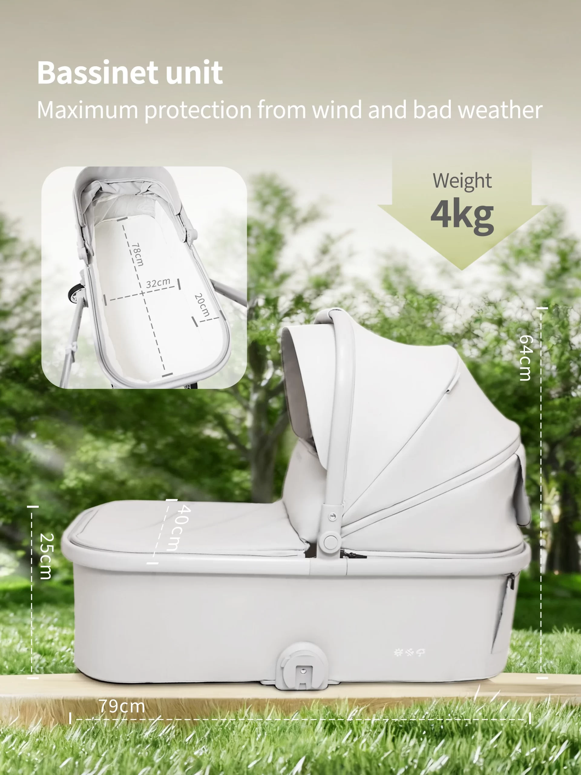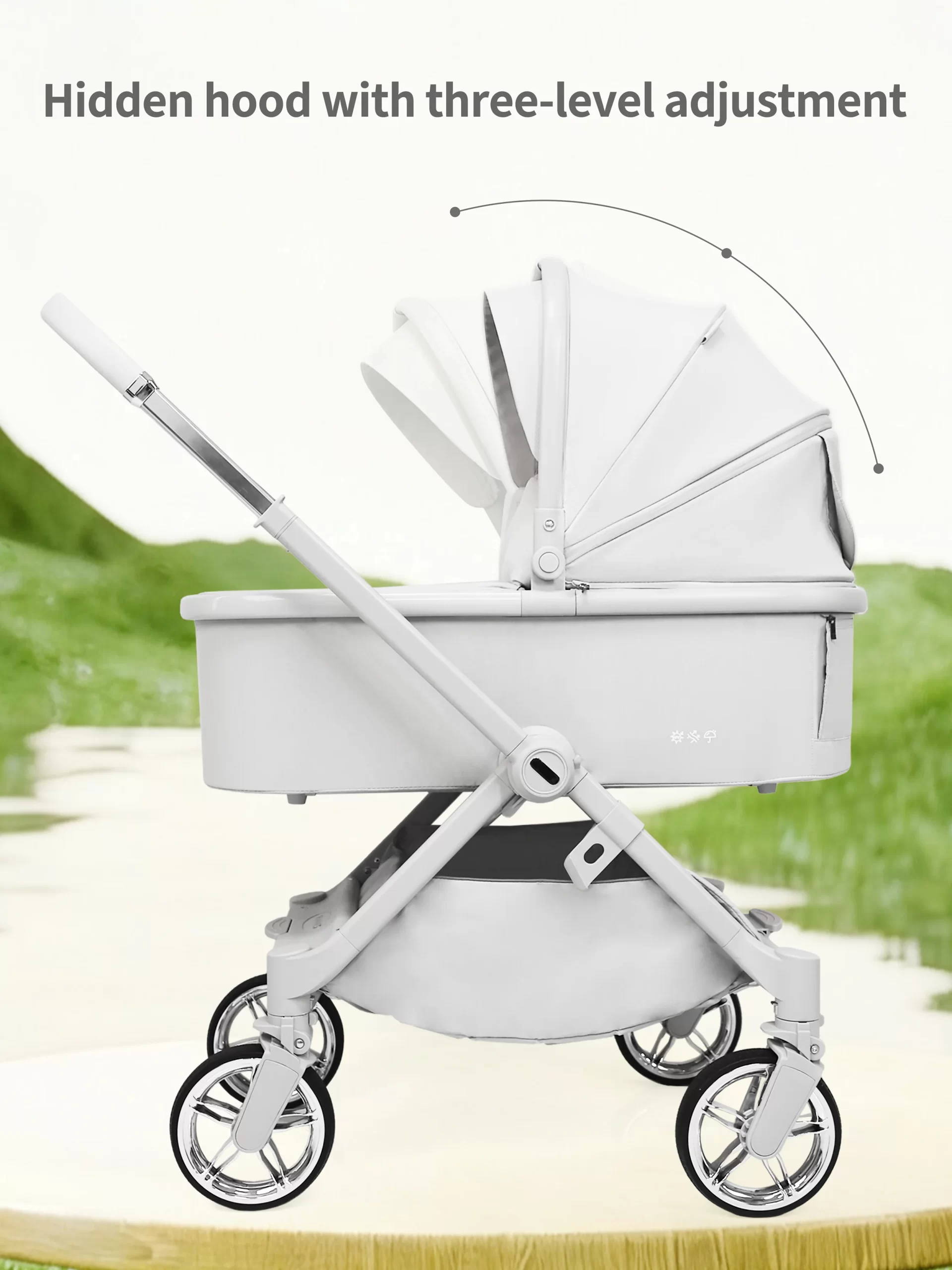 The F900 Pro 2-in-1 Travel System is your perfect companion from day one. It includes all the premium features of the F900 Pro stroller—like the dual reversible seat and handlebar, full PU leather, and 4-wheel swivel—plus a dedicated infant bassinet. This provides a safe, flat sleeping space ideal for newborns. Enjoy unparalleled flexibility and a seamless transition from the carrycot to the toddler seat as your child grows, all in one sophisticated and complete package.