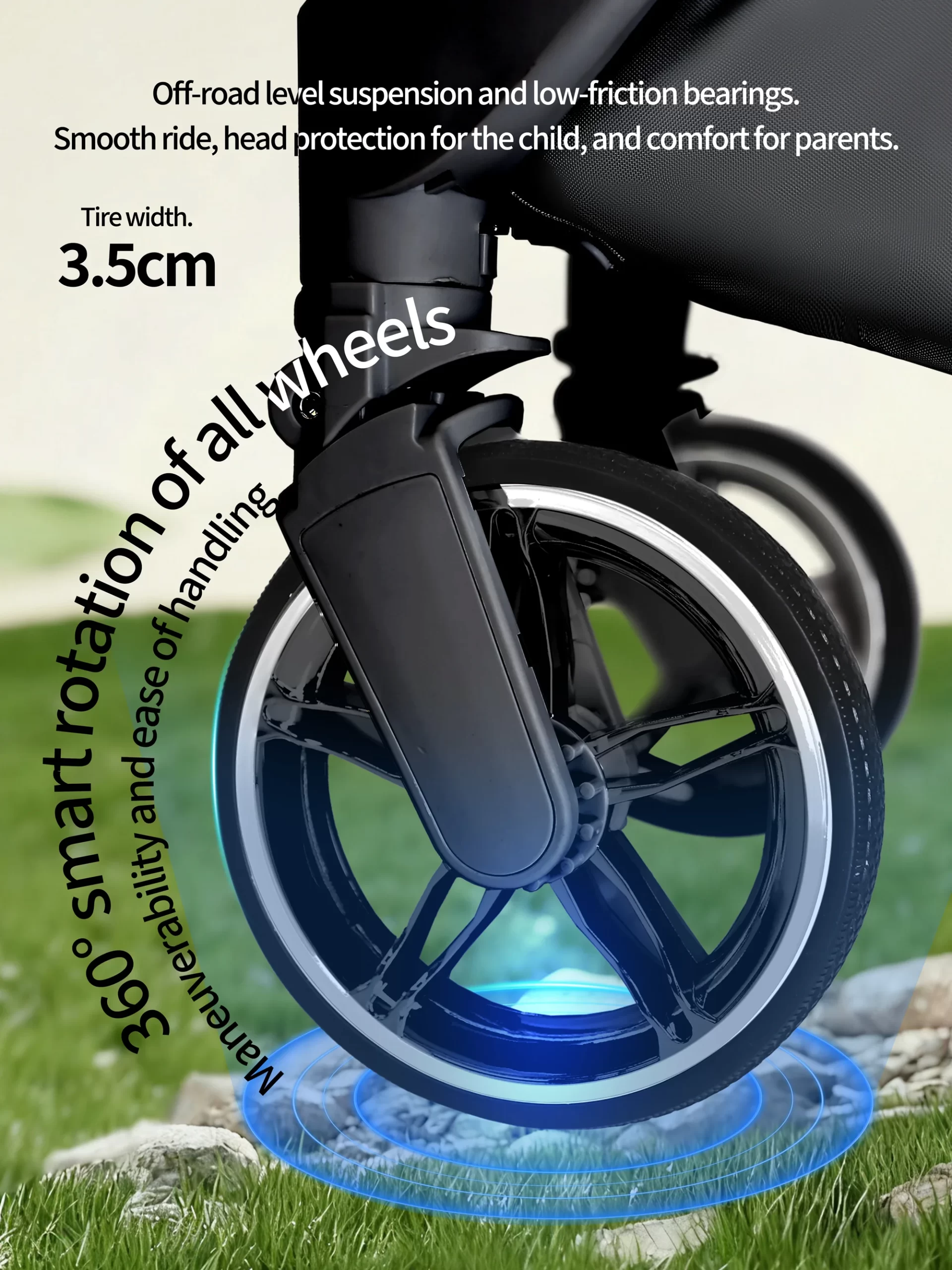 4-Wheel Swivel & 7″ Front & Rear Wheels