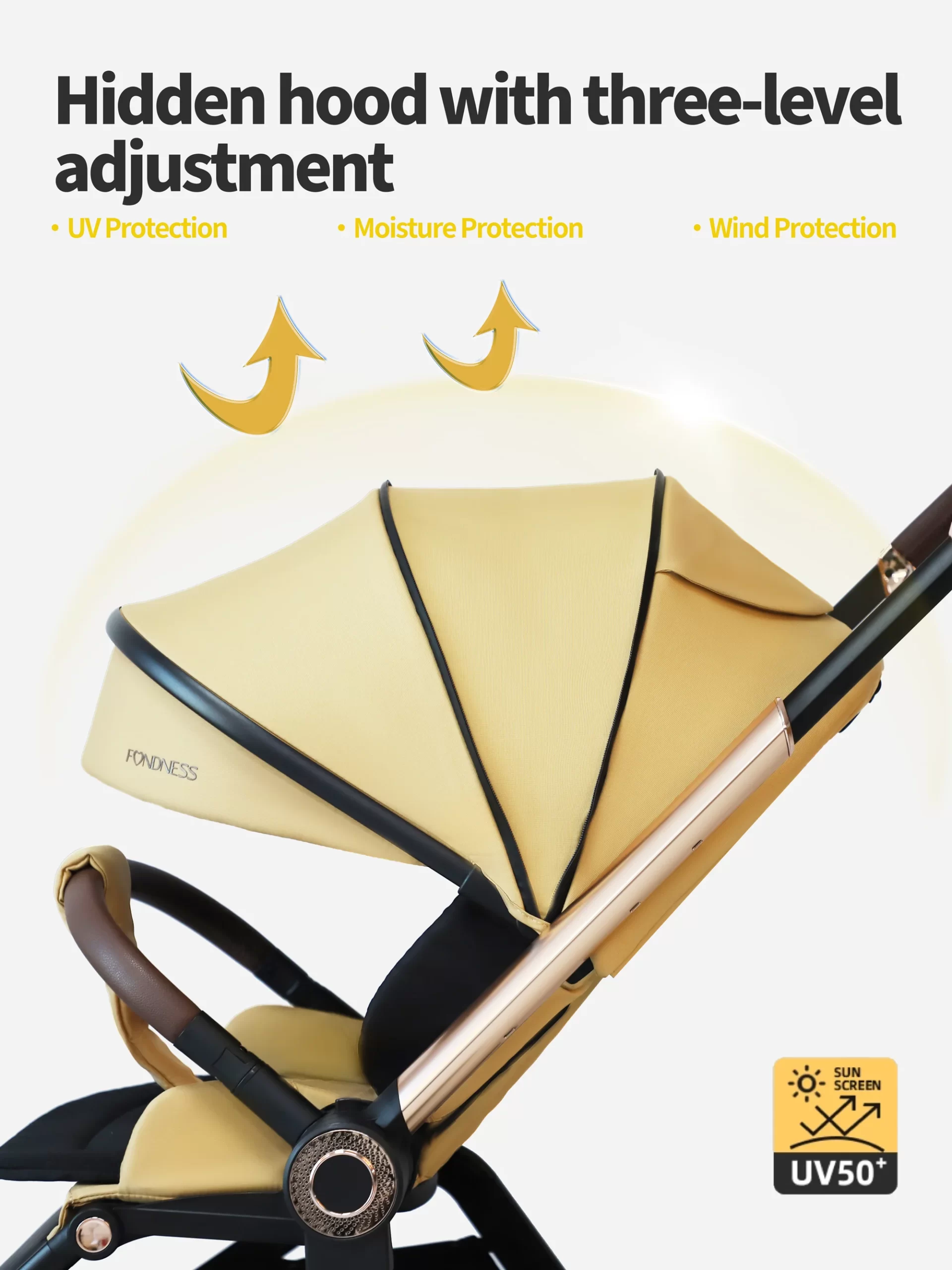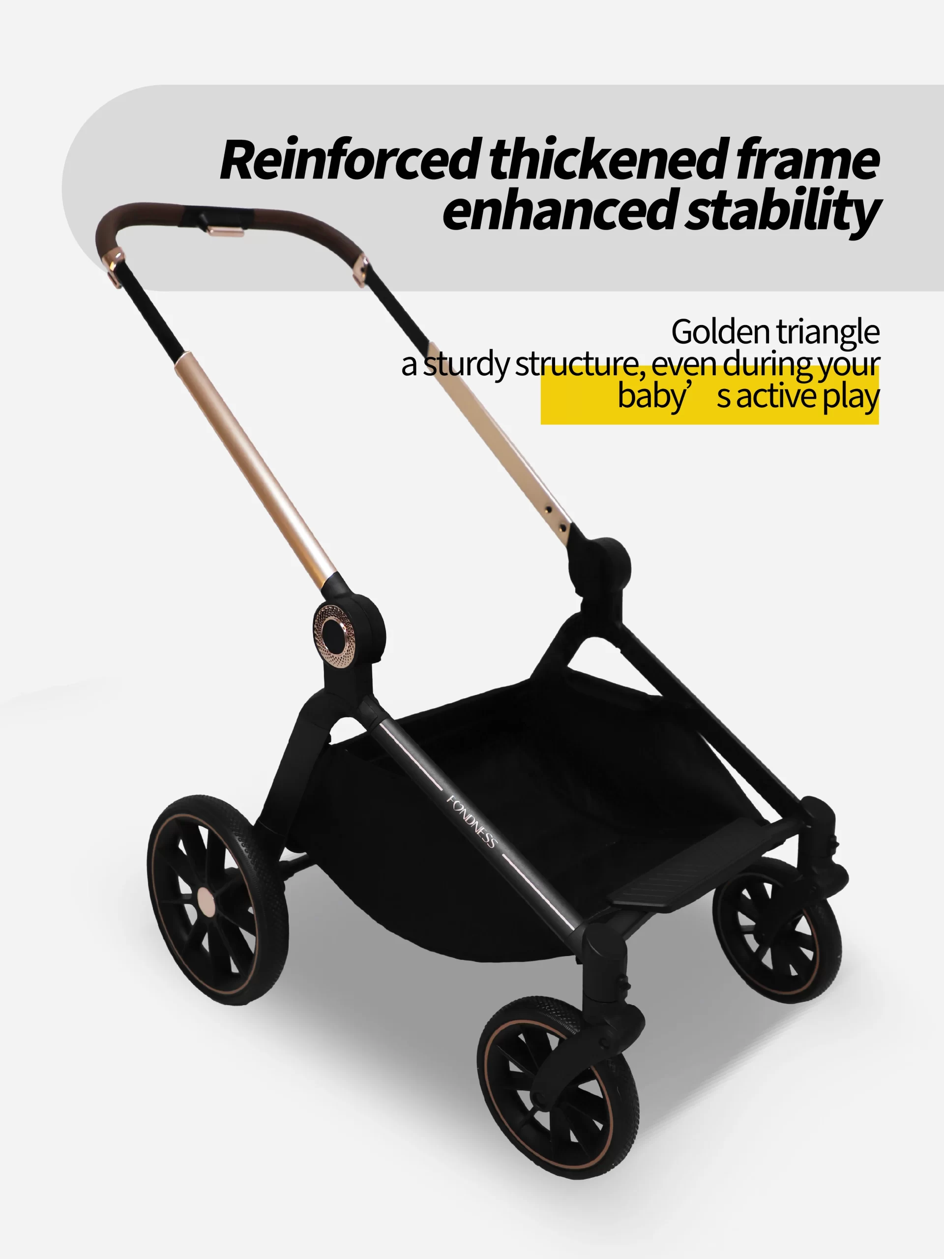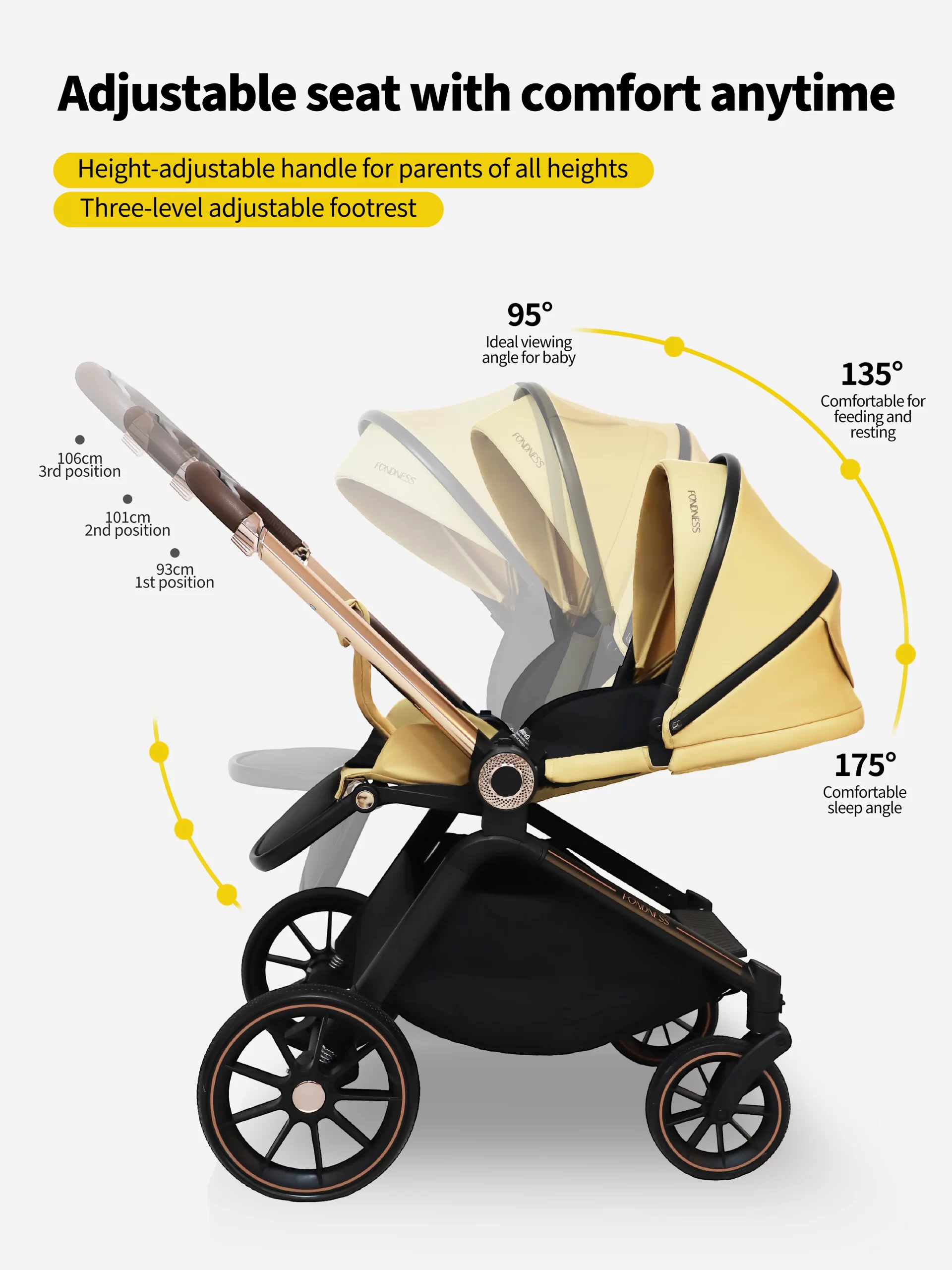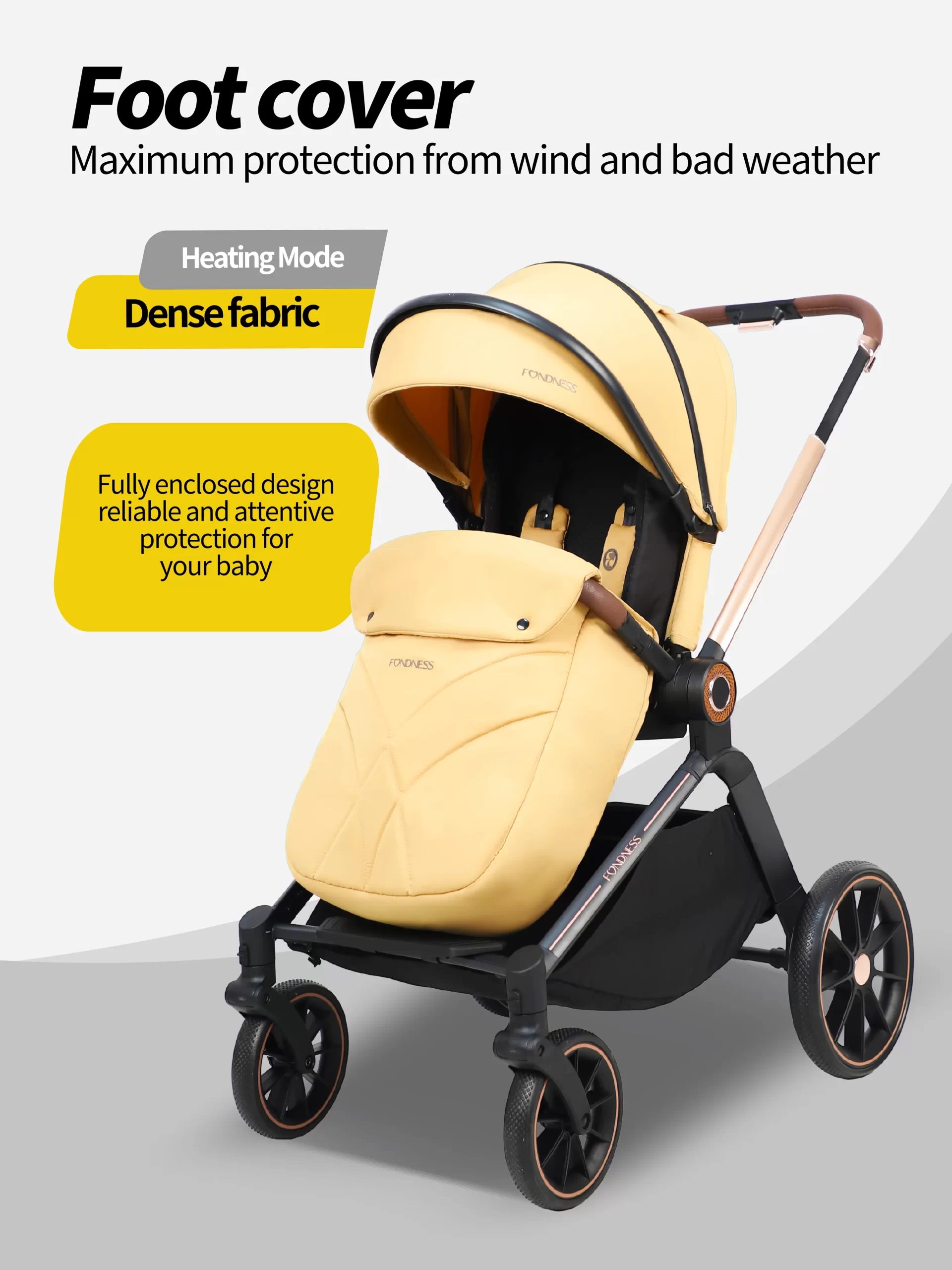 Navigate any path with the versatile FTC007 stroller. Its defining feature is the reversible seat, allowing your child to face you for bonding or the world for exploration. Built on a sturdy aluminum frame, it rides smoothly on 8″ front and 12″ rear foam wheels. The premium leather handlebar and armrests add a touch of luxury, while the one-step dual rear brake ensures safety. It folds compactly to stand on its own and comes with a complete accessory set including a backpack, mosquito net, and rain cover.
