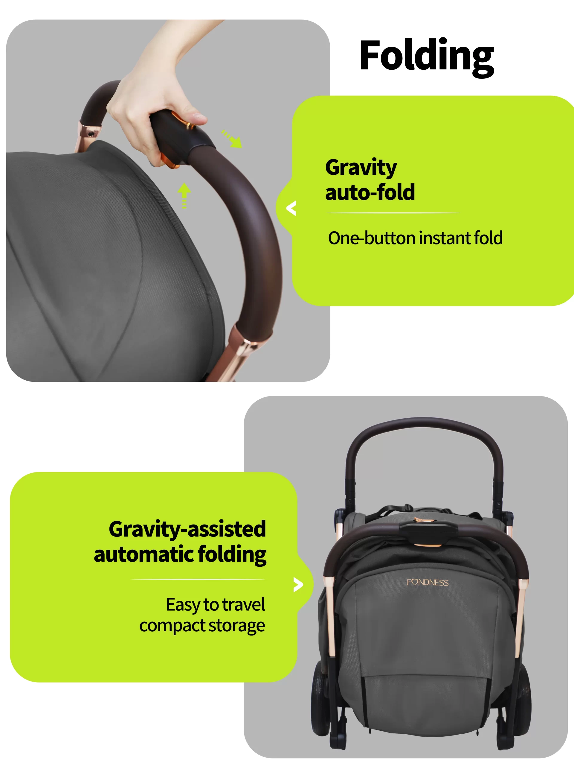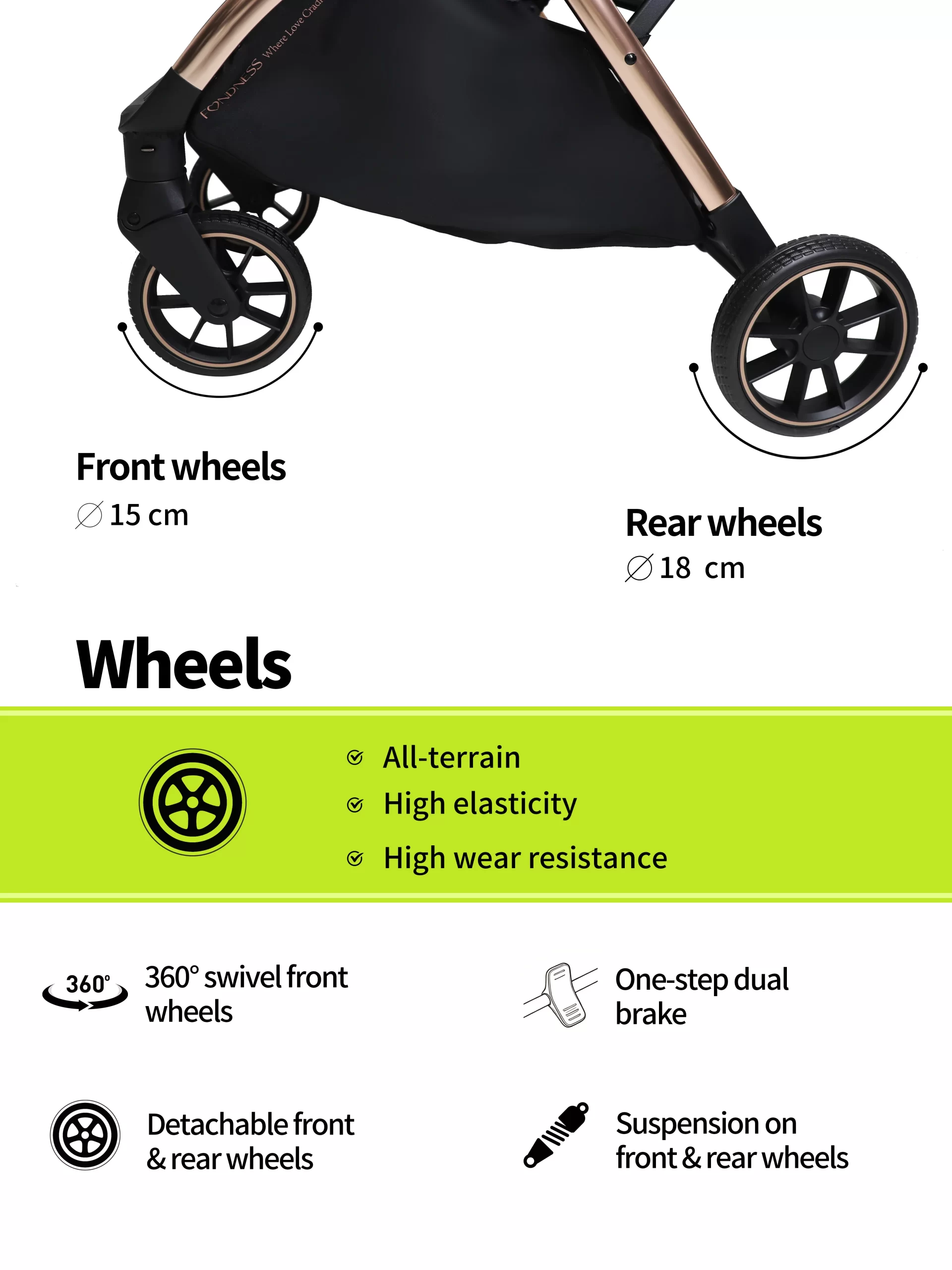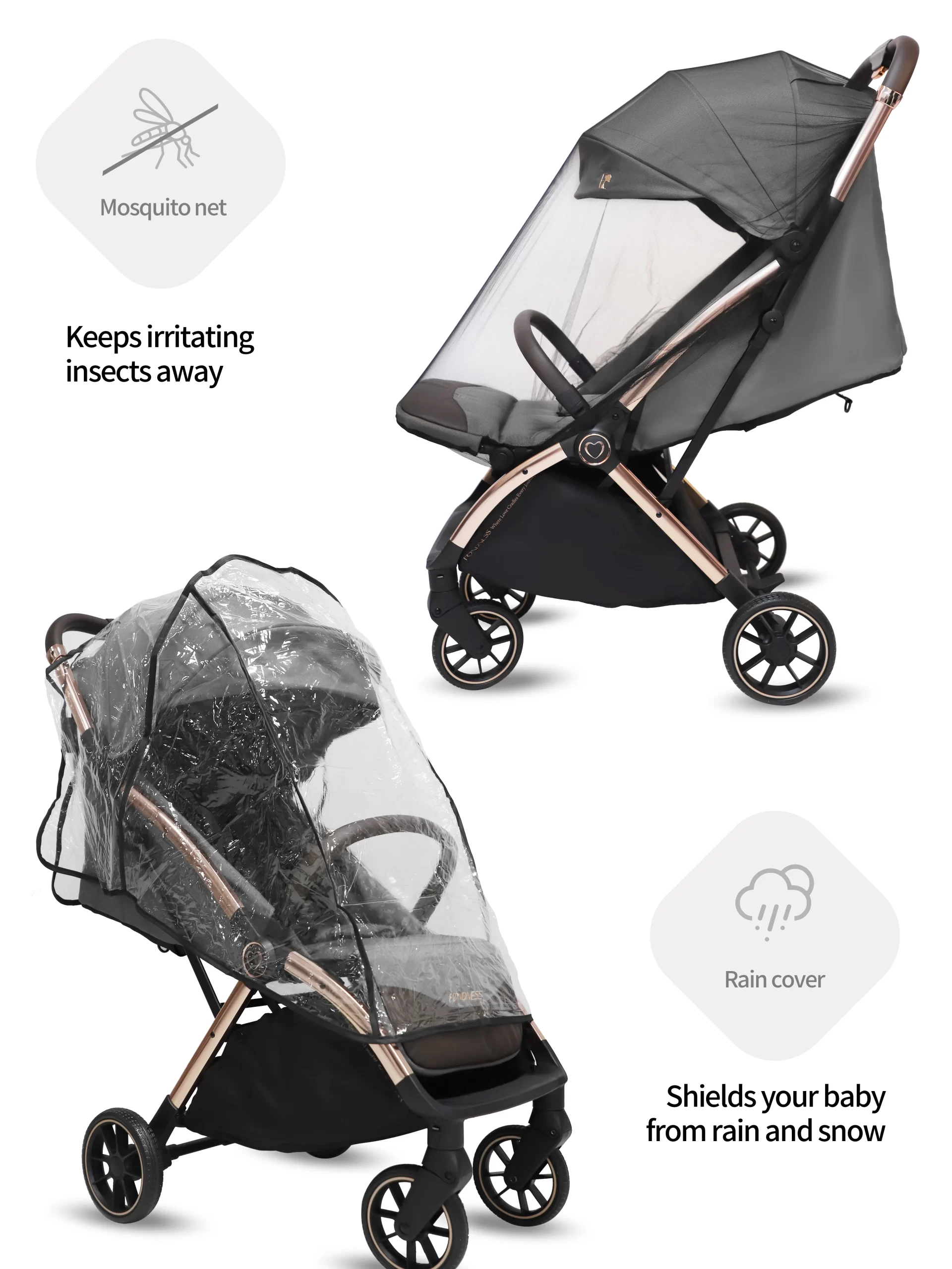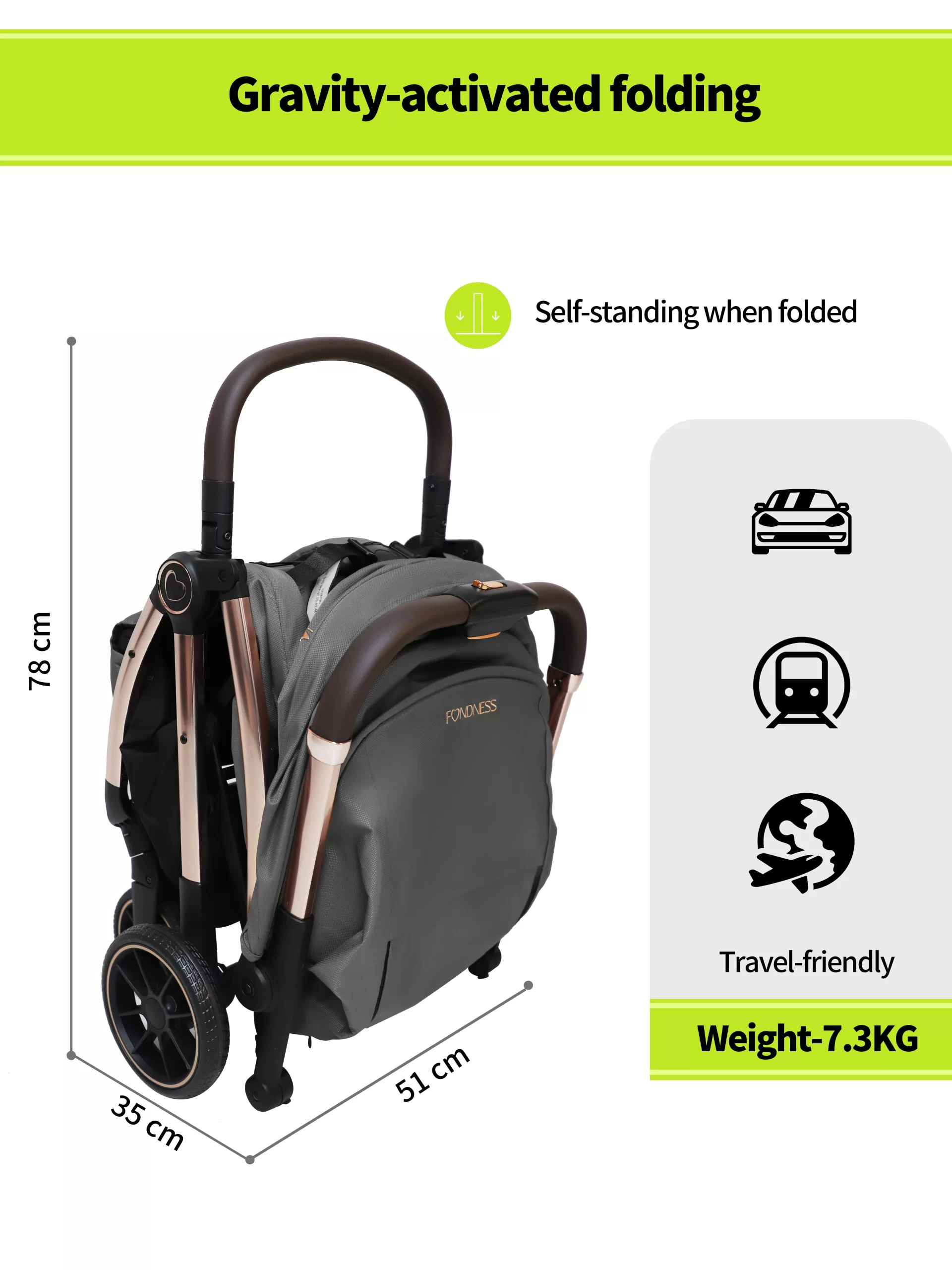 The FTC024 offers advanced convenience with its gravity-assisted automatic folding system. Engage the mechanism, and it folds itself effortlessly, locking compactly to stand. Beyond this smart feature, it doesn’t compromise on comfort, featuring full suspension, infinite recline, removable wheels, and a removable armrest. It comes complete with all essential weather accessories.